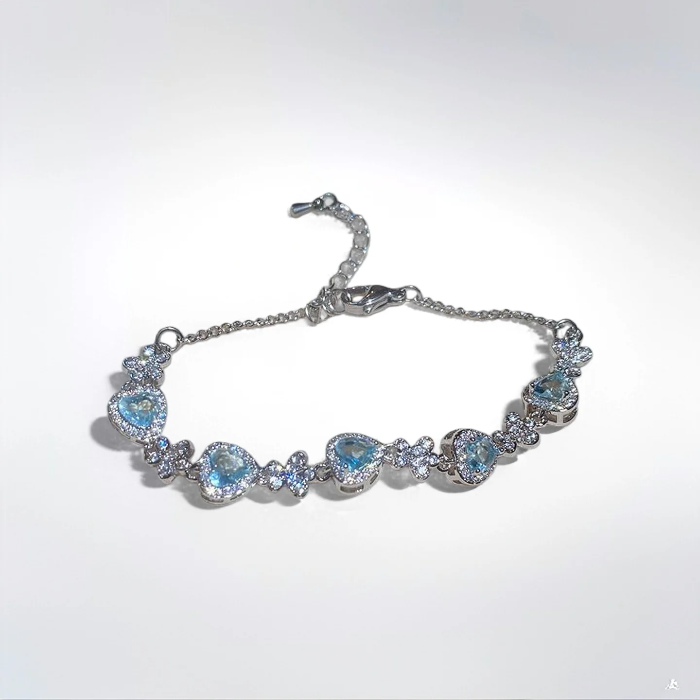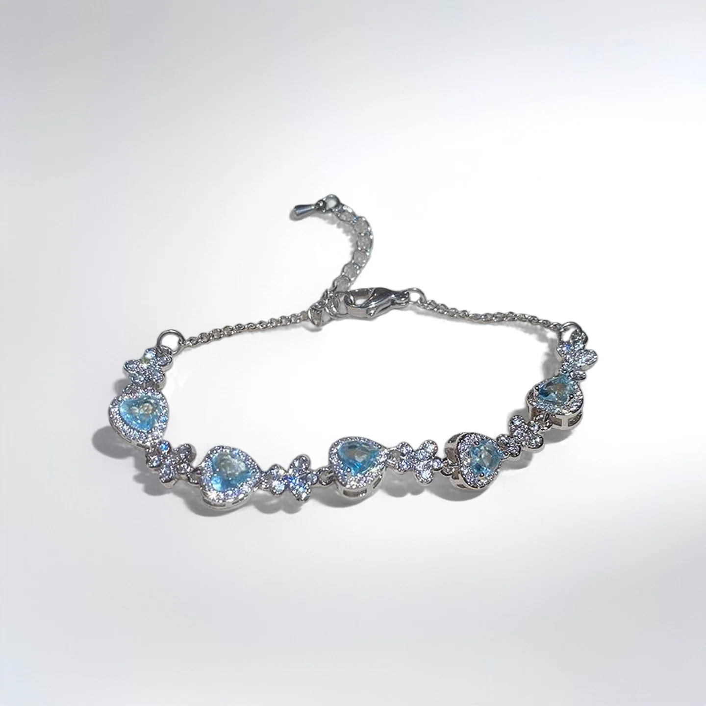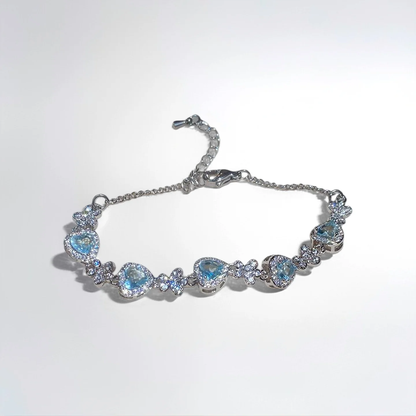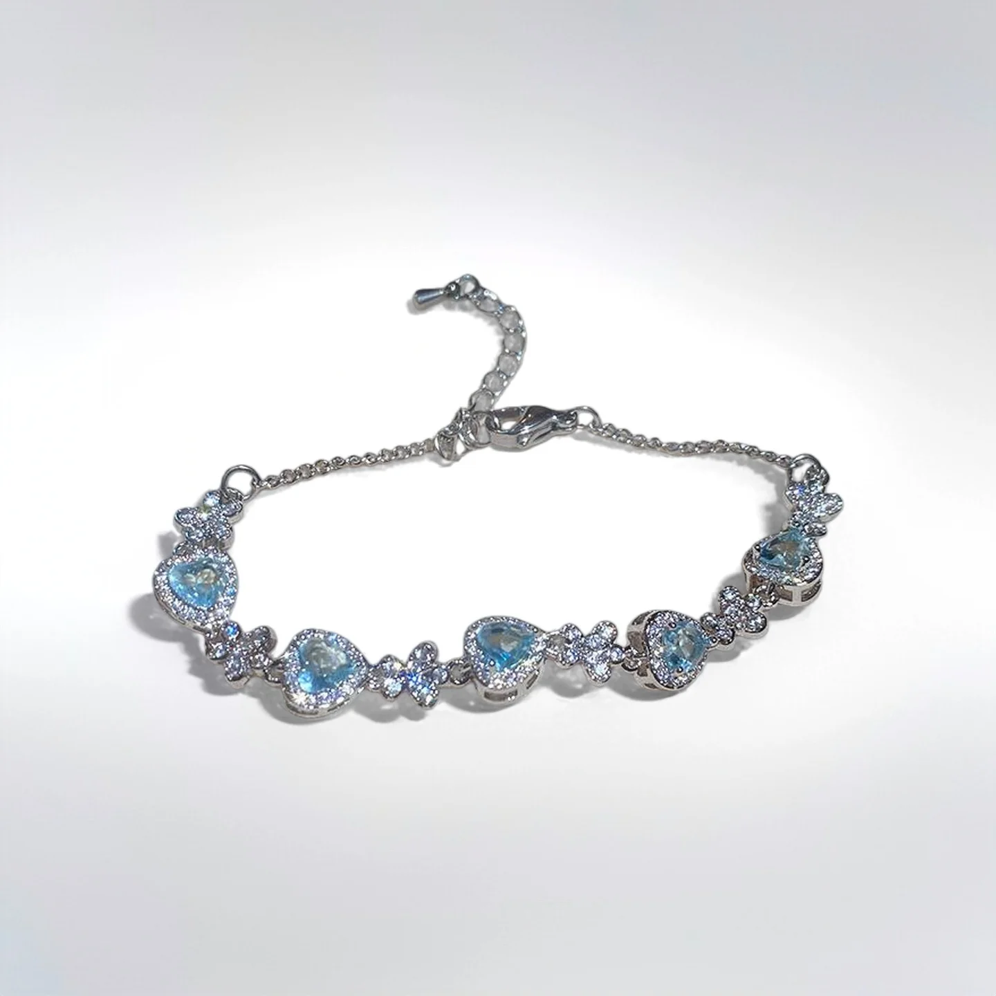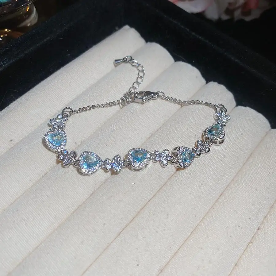 Fashion Chain & Link Bracelets Light Blue Diamond Zircon Copper Heart Bracelet Jewelry Fancy Jewellery for Ladies Women Gift